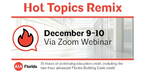 We have just completed our final Hot Topics in-person continuing education session of 2025. If you were unable to attend in person, you still have the opportunity to earn up to 15 HSW continuing education credits, including the two-hour required Advanced Florida Building Code credit by attending our virtual Hot Topics Remix webinar.