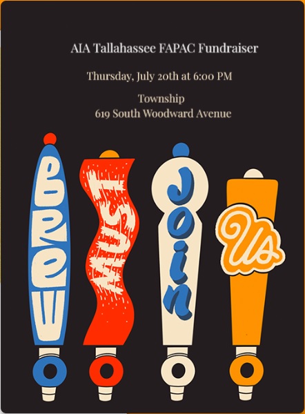 Please join us July 20th for a fundraising event at Township in Collegetown. Come out and support your fellow members who will be bartending to raise funds. All tips will go to efforts to support FAPAC, the political organization that focuses on legislative issues that impacts the architectural profession.