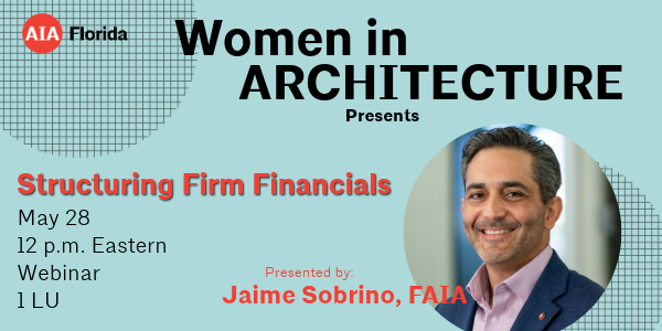 Join Women in Architecture for a webinar on Structuring Firm Financials, presented by Jaime Sobrino, FAIA.